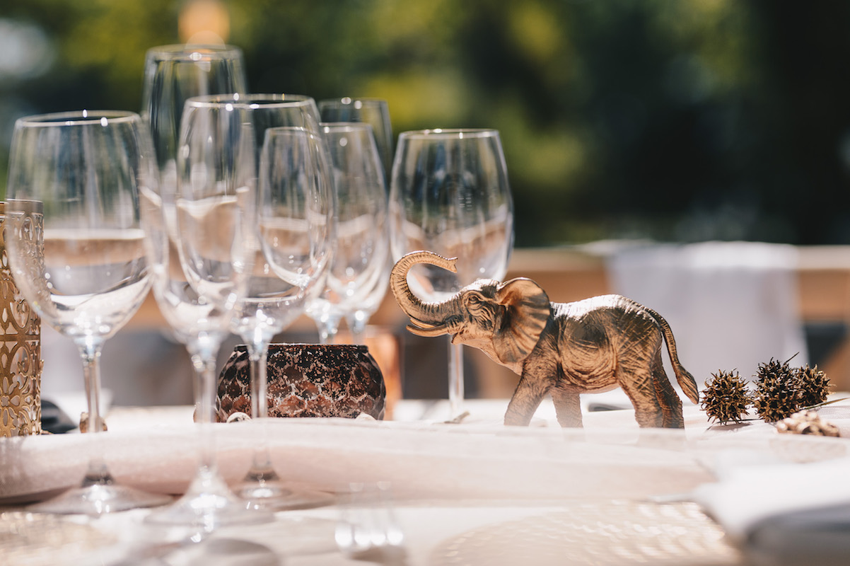Our beautiful African landscapes and wild animals were part of the motivation for John and Jenny to bring all their guests from the Philippines, America and many other countries all the way to Cape Town for their wedding. Jenny wanted soft elegance, showcasing the protea and incorporating African animals in a stylish way. Her chosen colour scheme was blush, gold, off-white and grey and they wanted to tie in with the African Safari theme by moving guests from one location to the next for every part of the wedding day.